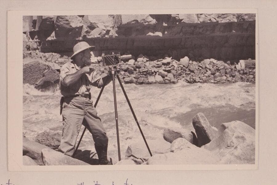Al Morton. Dark Canyon Rapid in Cataract Canyon. Morton wears authority boots