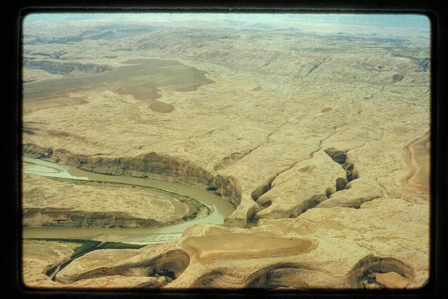 Up the lagoon at mouth of Havasu Creek. Swimmers at lower left