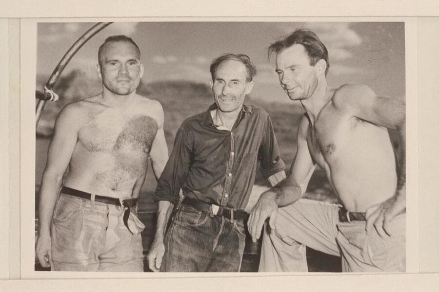 At Pierce Ferry; Buzz Holmstrom is left, Emery Kolb is center and Nevills is right