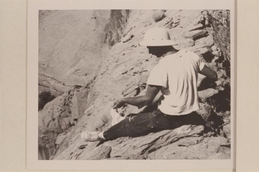 Norm Nevills measuring the Gregory Bridge in the side canyon of Escalante Canyon