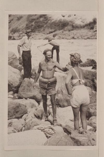 Nevills aiding in the portage-lining of the "Mexican Hat II" at Lava Falls
