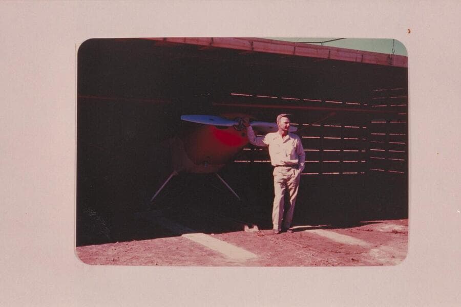Norm Nevills at his hangar at Mexican Hat, Utah