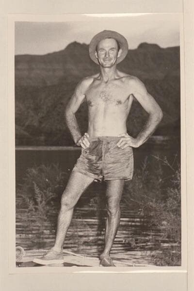 Norm Nevills at end of 1949 run; Lake Mead. About two months before his death