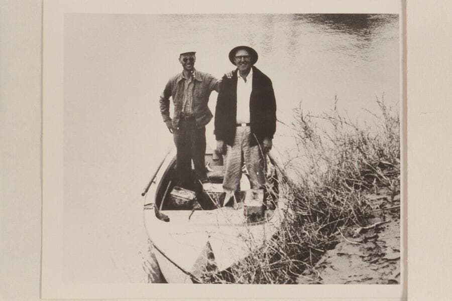 Ed Nichols and Ed Hudson with the inboard boat "FINALLY"; Lees Ferry after completion of run from Glenwood Springs, Colorado
