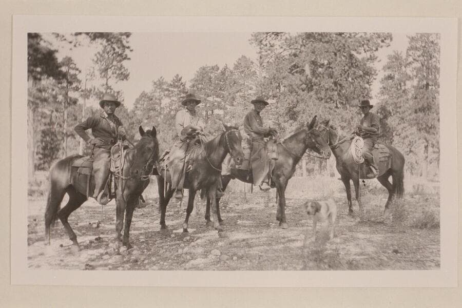 ![Camp of Uncle Jim Owen. Uncle Jim has his back to the tent and faces the camera. At right is John H. Davis, sheep man of Cannonville, Utah. [And at left?] Two easterners who had come to Buckskin Mountain for a cougar hunt](/_next/image?url=https%3A%2F%2Frail.huntington.org%2FIIIF3%2FImage%2F22APN4ZT32DL%2Ffull%2F%5E360%2C%2F0%2Fdefault.jpg&w=750&q=75)