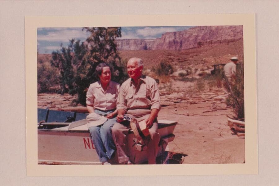 Malcolm and Fredonia Moss at Lees Ferry. End of San Juan run with Nevills