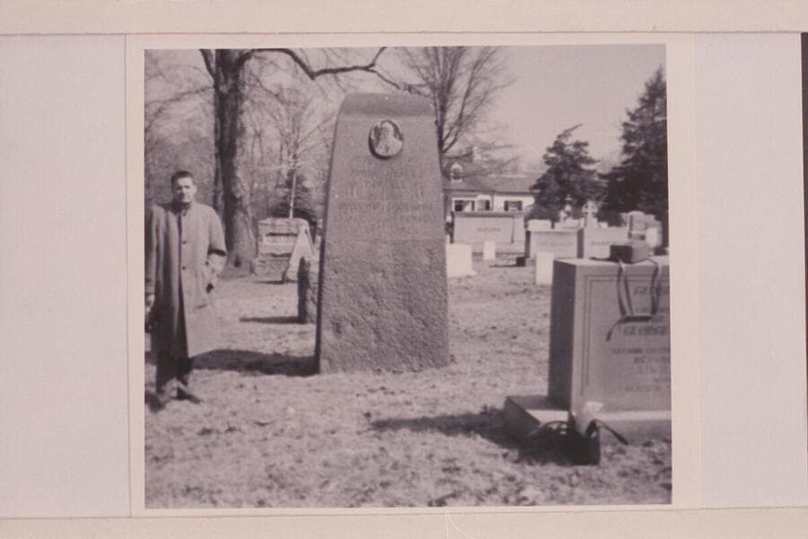 Robert W. Olsen, Jr., at the grave of John Wesley Powell in Arlington Cemetery. In 1969, Olsen was Historian for the National Park Service at Whitman Mission National Historic Site, Walla Walla, Washington
