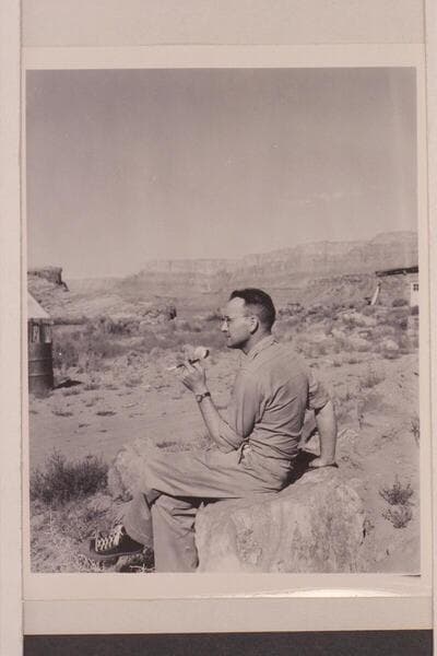 Bestor Robinson at end of first motor traverse of the Grand Canyon