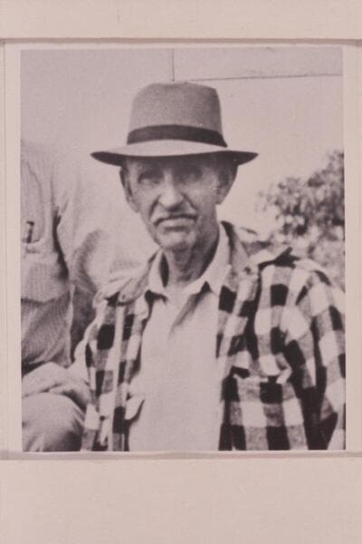 Ed Hudson staring camera down in Paso Robles at time of trip in "Esmeralda" from Boulder Dam to Needles in 1941, March