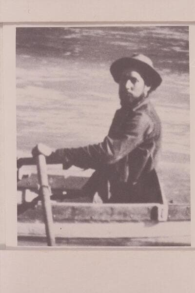 Charles Silver Russell at the oars of the "Utah." Pipe Creek. Grand Canyon