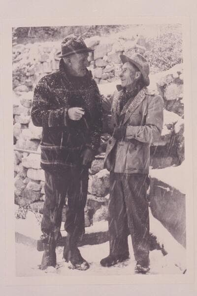Emery Kolb photographing in the Grand Canyon near Bright Angel Creek. One of Dave Rust's folding canvas boats is at right