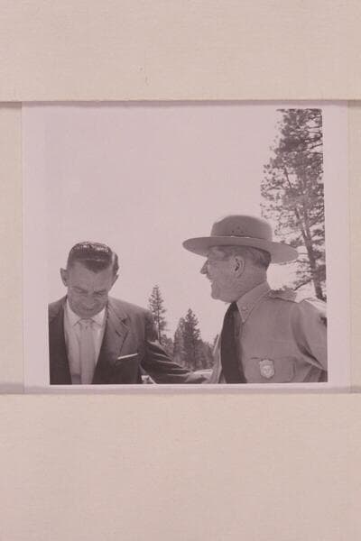 Louis Schellback (right) expresses pleasure at the opening of the Visitor's Center at the South Rim; Chuck Richey left
