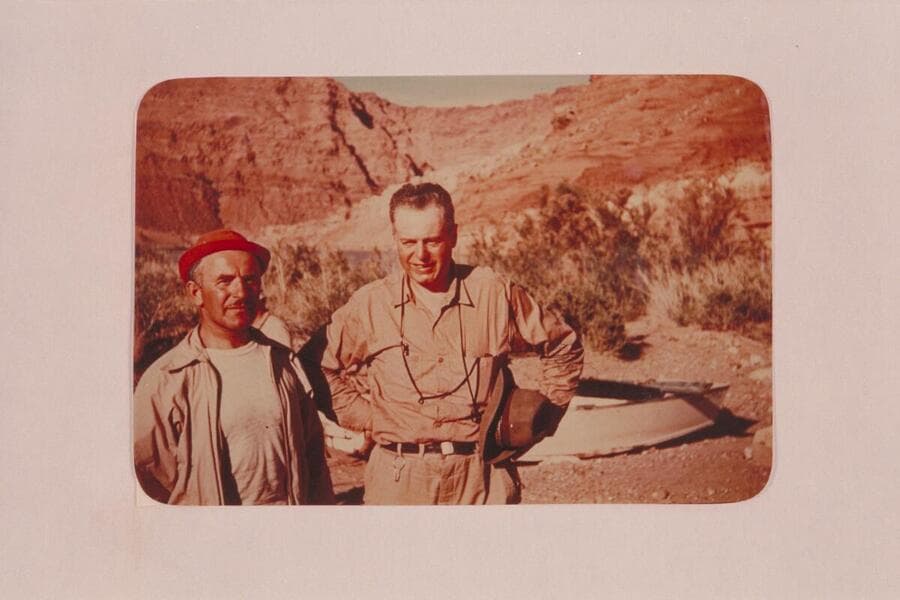 Arthur Gower (right) with Paul Seel. Members of Nevills San Juan party which left Mexican Hat 1948, May 19