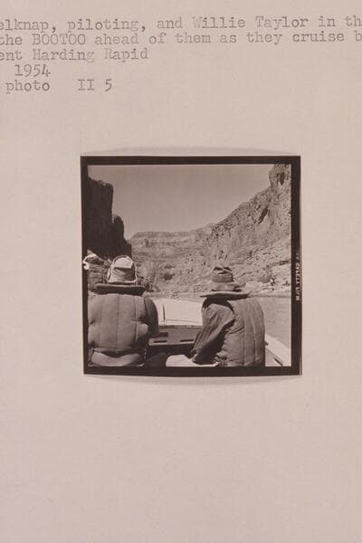 Bill Belknap, piloting, and Willie Taylor in the "Cactus" watch the "Bootoo" ahead of them as they cruise below President Harding Rapid