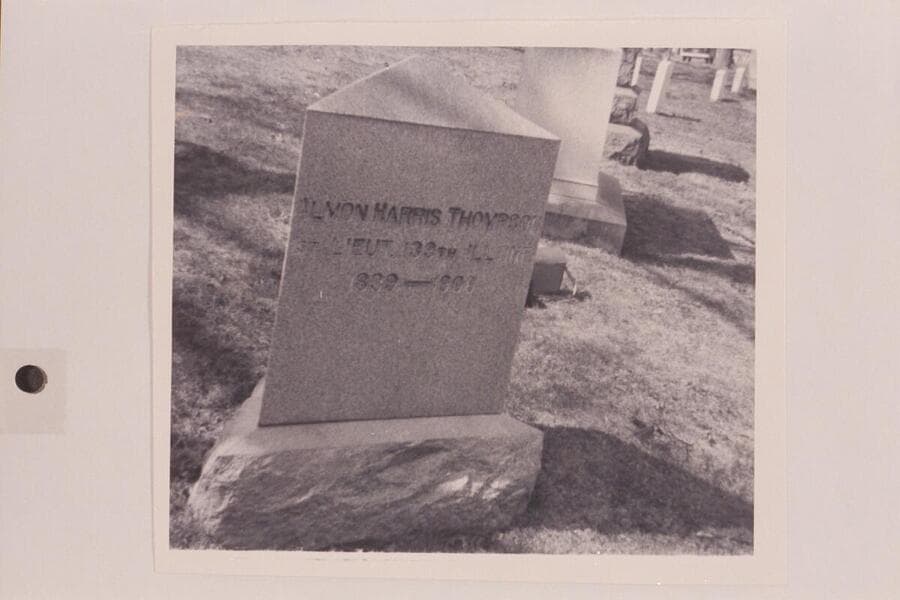 Face of triangular Thompson tombstone in Arlington Cemetery dedicated to Almon Harris Thompson