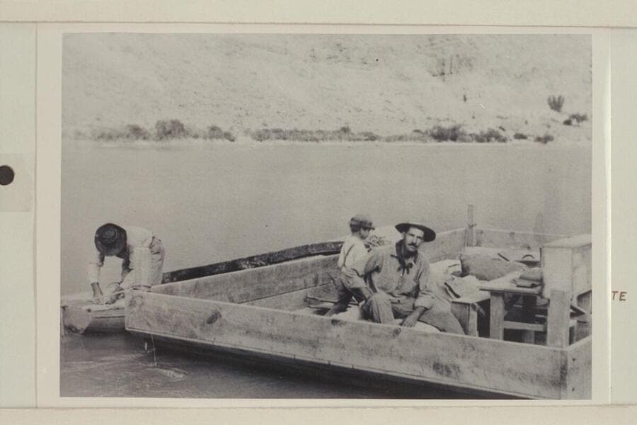 Arthur C. Waller is at right in the scow. Lees Ferry during the Spencer activity