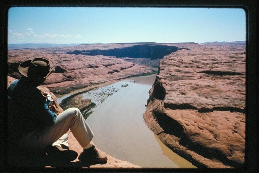Lake Powell filling; Iron Rock Island; horses on rim; Mile 109.75