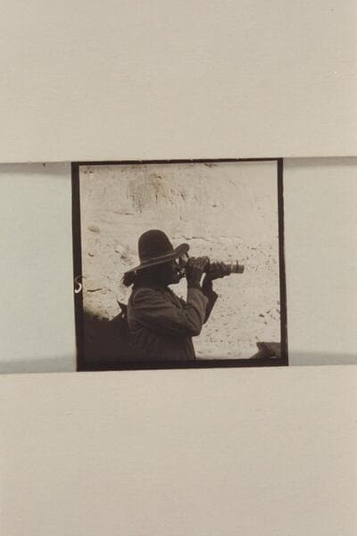 Buck White-hat, Navajo Indian guide. Ch'ahlgaii. Finding the white man's aid to sight can be amusing