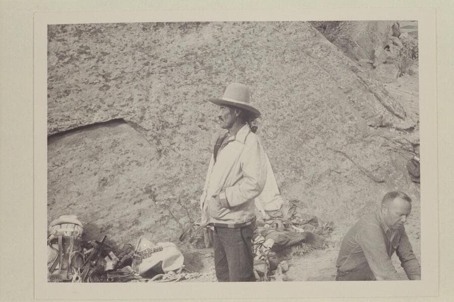 Buck Whitehat in camp. Bill Belknap at right. Middle fork of 73.6