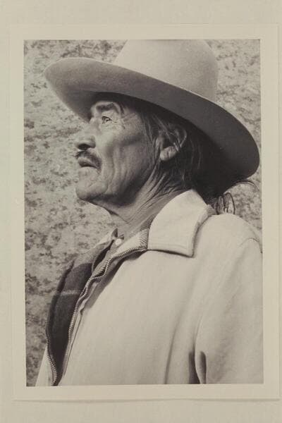 Buck Whitehat in camp. Bill Belknap at right. Middle fork of 73.6