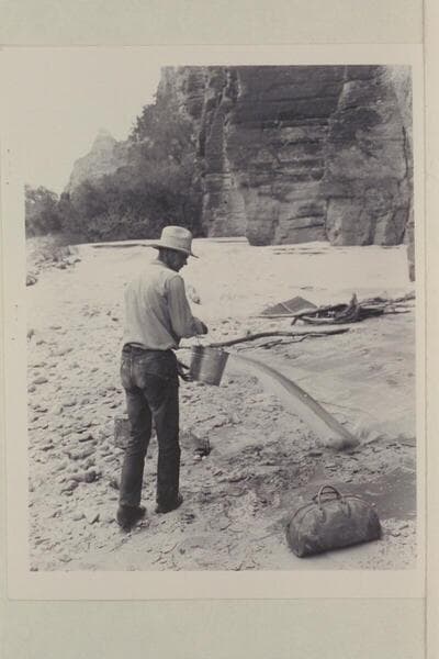 J. Frank Wright, boatman and cook with Nevills 1948 party. Marble Canyon. Mouth of House Rock Canyon