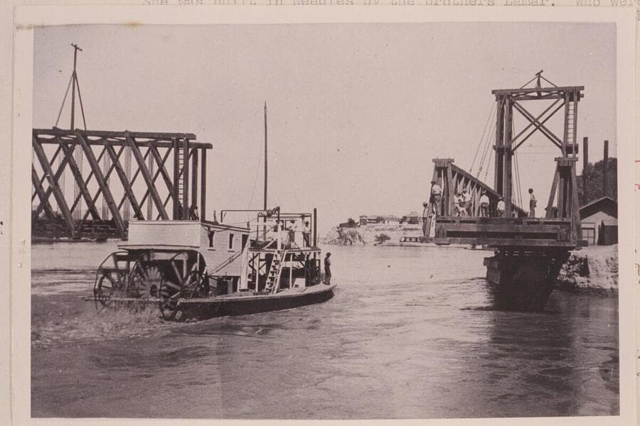 Yuma drawbridge (i.e. rising bridge), with ferry "Aztec."