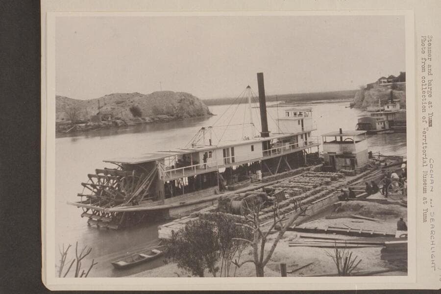 The "Cochan" and the "Searchlight" at Yuma. There is a print in the Territorial Museum at Yuma. From Steve Dolley, 1955, Apr