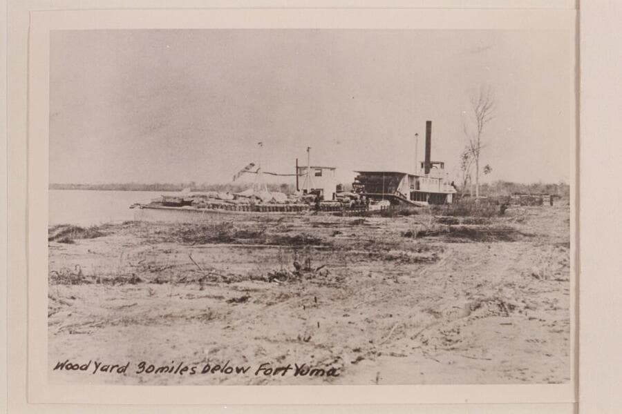 The "GILA" at the yards of the Colorado Steam Navigation Company above the rail bridge at Yuma