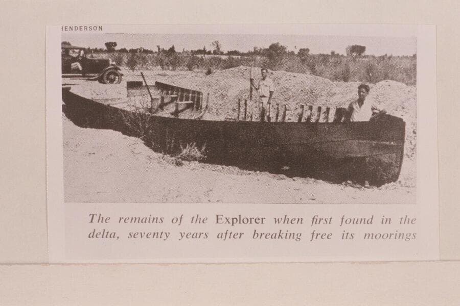 The remains of the "Explorer" when first found in the delta, seventy years after breaking free its moorings