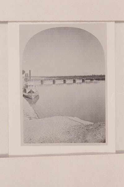 Southern Pacific rail bridge at Yuma. The "GILA" is moored at the bank above the bridge