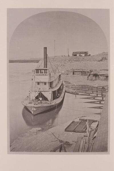 Southern Pacific bridge at Yuma. The river steamer "Gila" is moored above the bridge