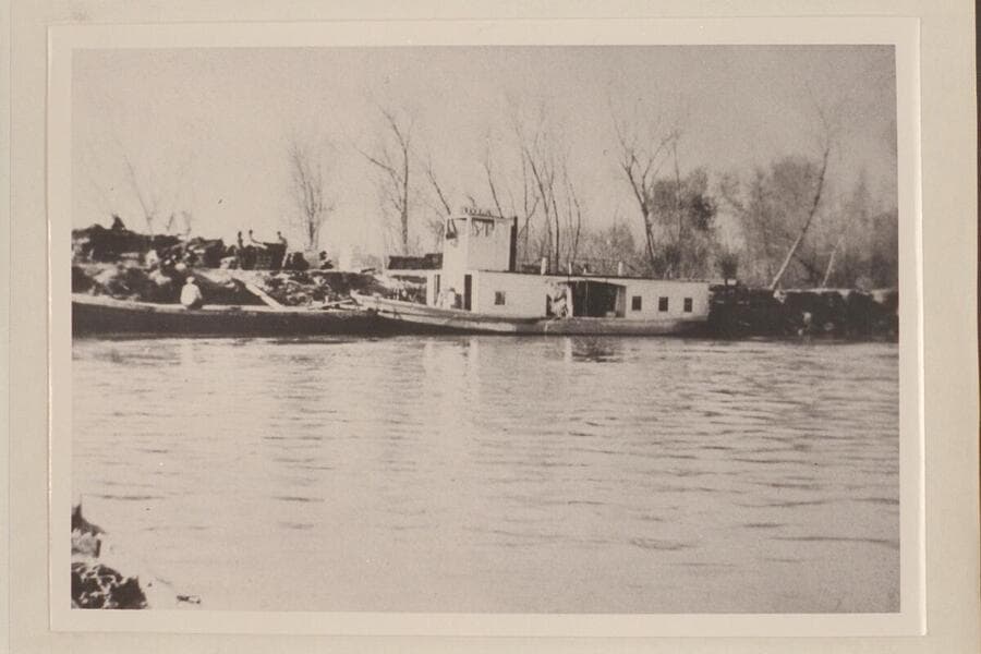 The motorboat "IOLA" operating on the lower river. Tied up at Ehrenberg