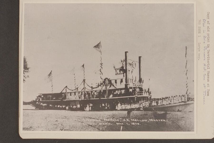 Repair to bank of lower Colorado River. The steamer "Searchlight" is shown