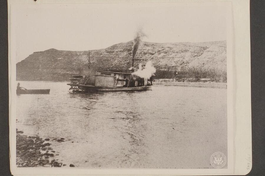 The steamer "Undine" wrecked while trying to ascend a rapid on Grand River above Moab