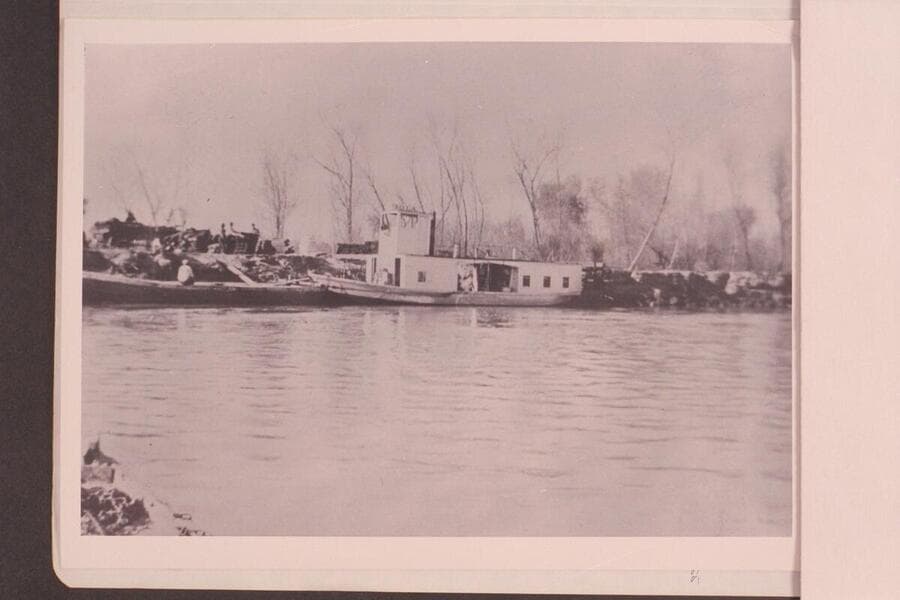 The motorboat "IOLA" operating on the lower river. Tied up at Ehrenberg