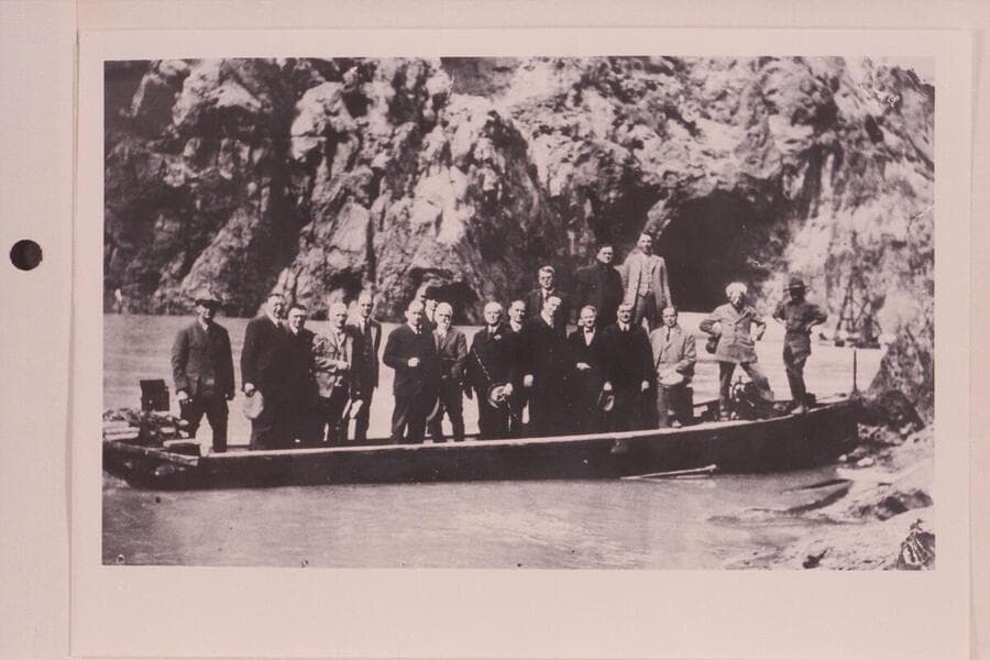 Part of Congressmen visiting site of Hoover Dam in Albert Jagerson motor boat