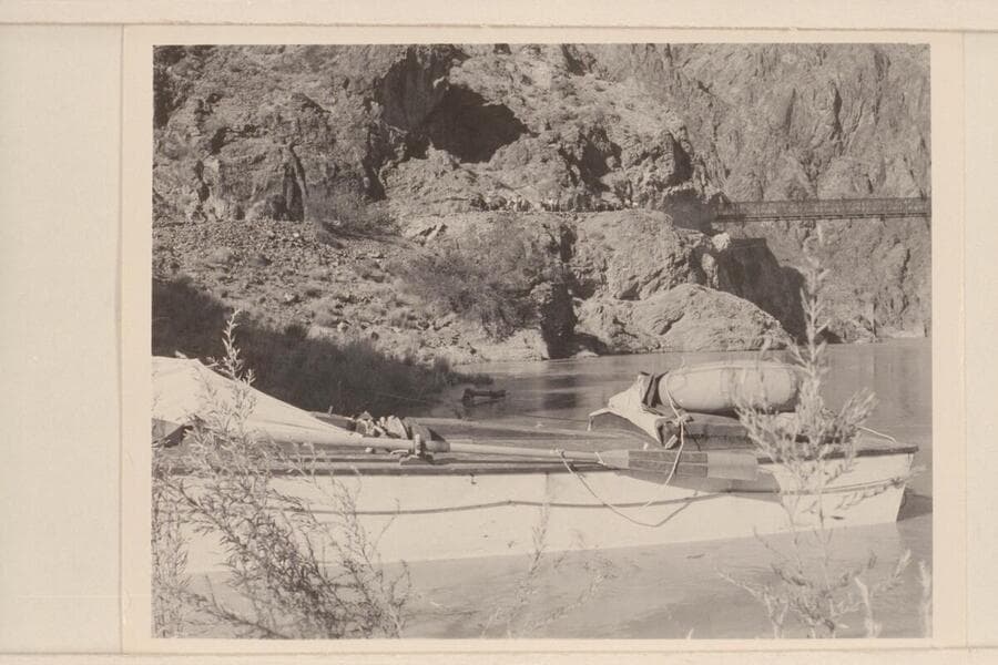 The "Esmeralda II" moored at the beach above Bright Angel Creek. The small floats aft were for emergency