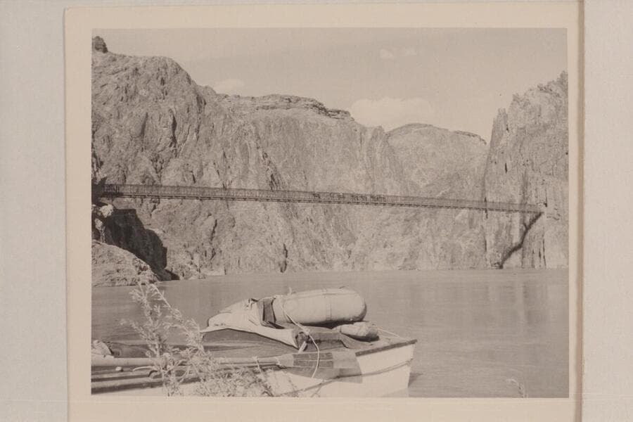 The "Esmeralda II" moored at the beach above Bright Angel Creek. The small floats aft were for emergency