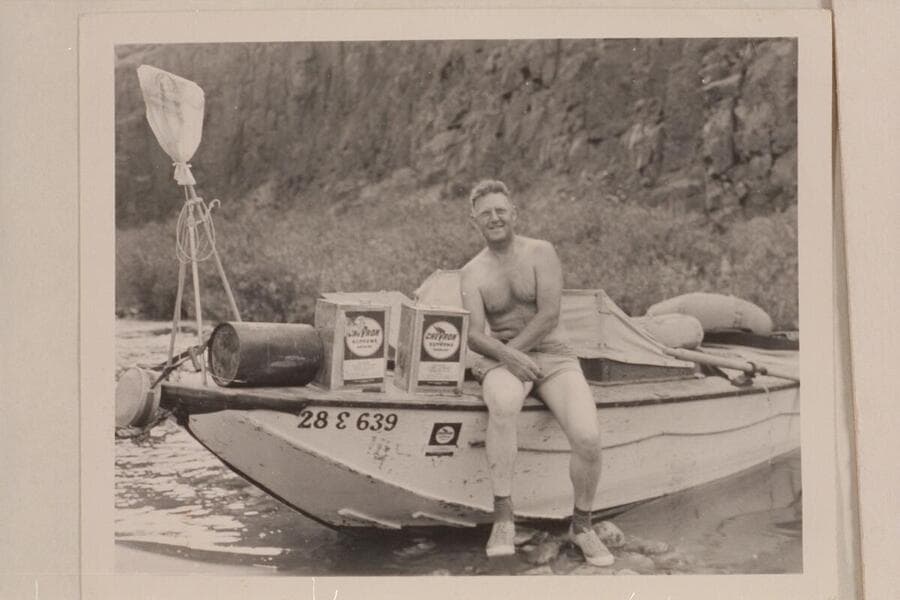 "Ed" Hudson and his motorboat "Esmeralda II." Tapeats Creek