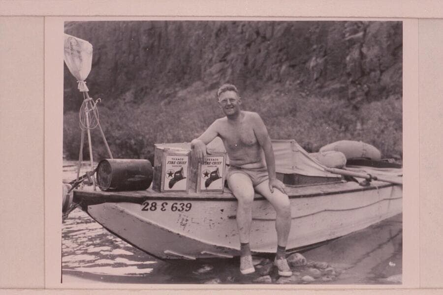 "Ed" Hudson and his motorboat "Esmeralda II." Tapeats Creek
