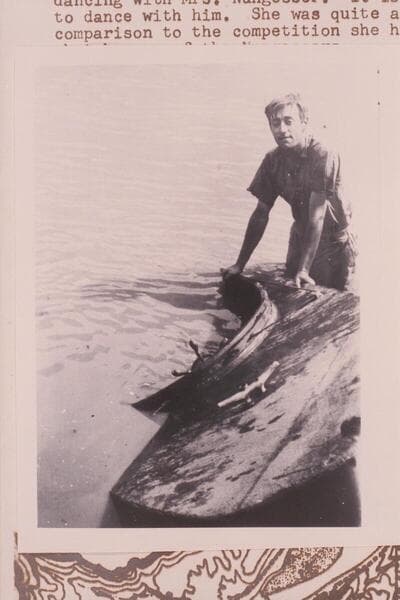 The sunken "Canopy" at Lees Ferry after her return following the breaking of her prop at Mile 105. D. Harold McDermid at stern