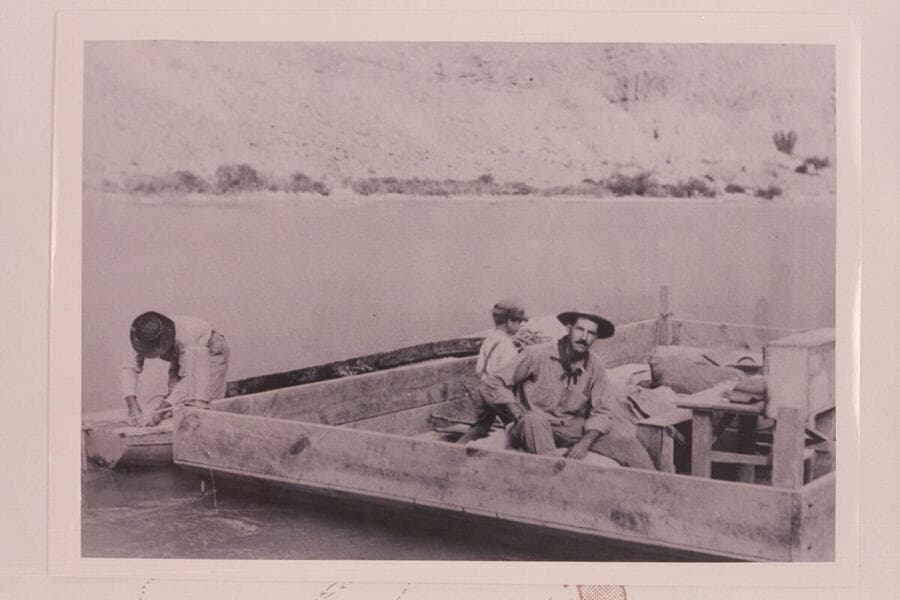 Arthur C. Waller is at right in the scow. Lees Ferry during the Spencer activity