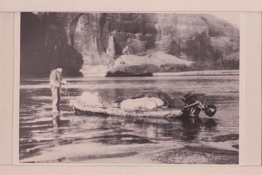 John Wetherill and the overloaded outboard skiff in Glen Canyon