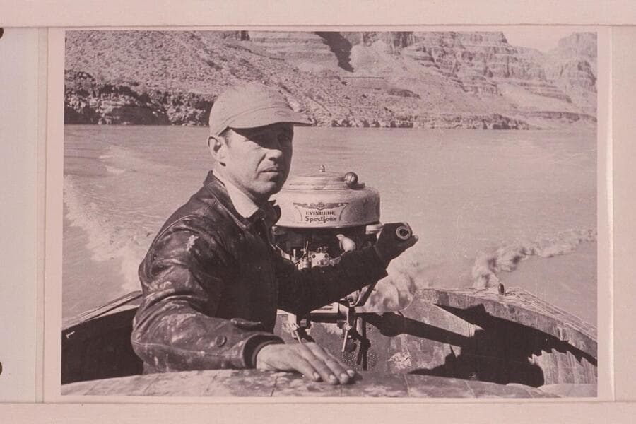 Bering Monroe. Running his 13-ft. outboard which was powered with a 1940 16HP Evinrude motor