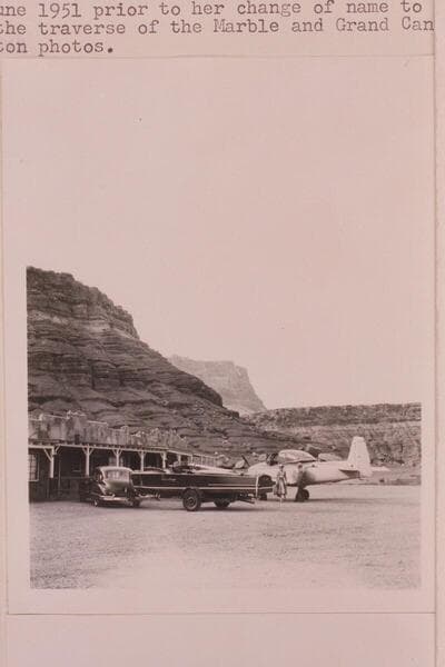 Unloading boats at Cliff Dweller's Lodge. Boat in truck trailer with Art Greene's truck ready to take it