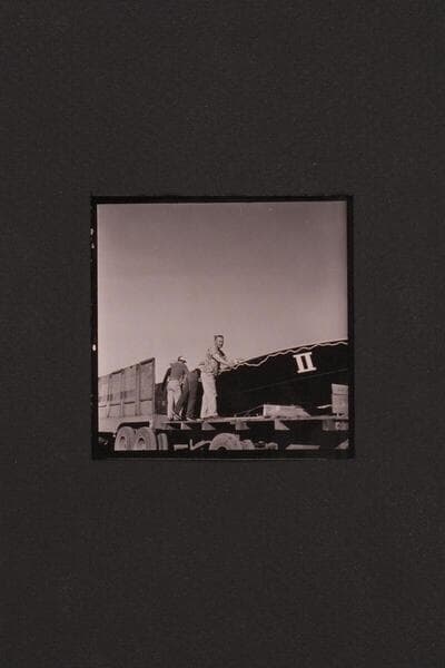 Unloading boats at Cliff Dweller's Lodge. The "II" on the truck. Dick Rose at front and Don Harris wears the two-colored cap