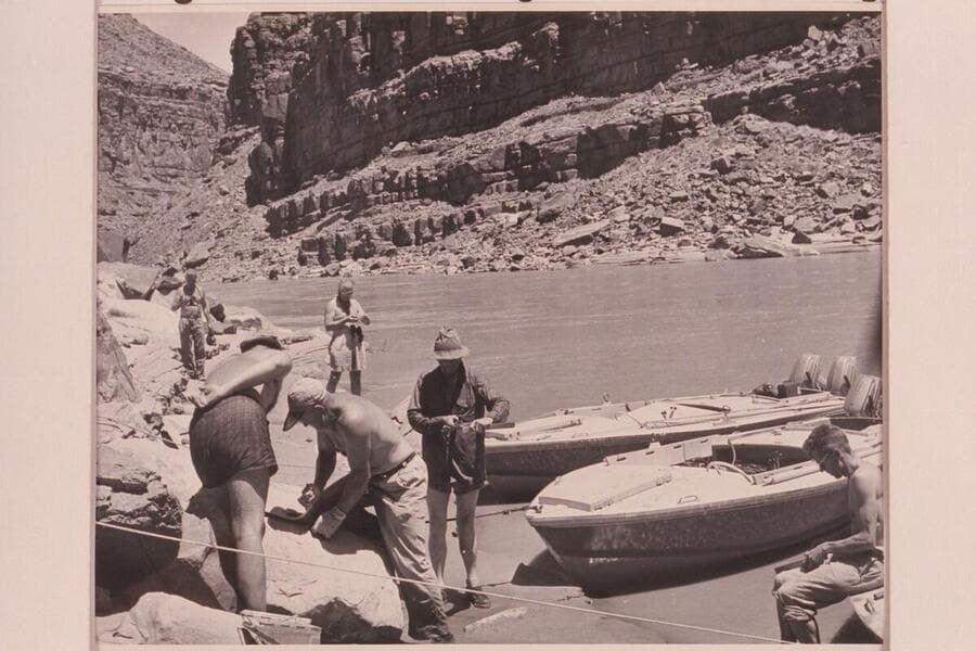 Replacing shields on the "Bootoo" and the "Cactus." Left to right: Visbak and Belknap. Lees Ferry gauge: 17,700 cfs