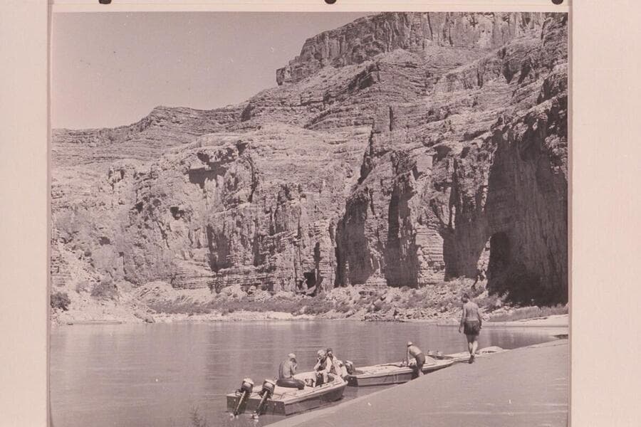 Crew preparing for departure from Lees Ferry: Sanderson; Taylor; Desloge; Visbak; Cutler; Jim Jordan; Belknap; Buzz Belknap