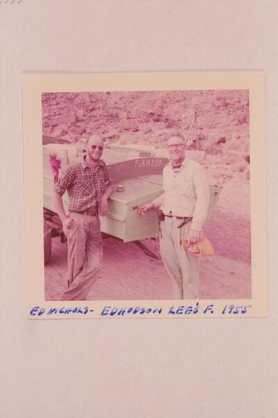 Ed Nichols and Ed Hudson with the inboard boat "FINALLY"; Lees Ferry after completion of run from Glenwood Springs, Colorado