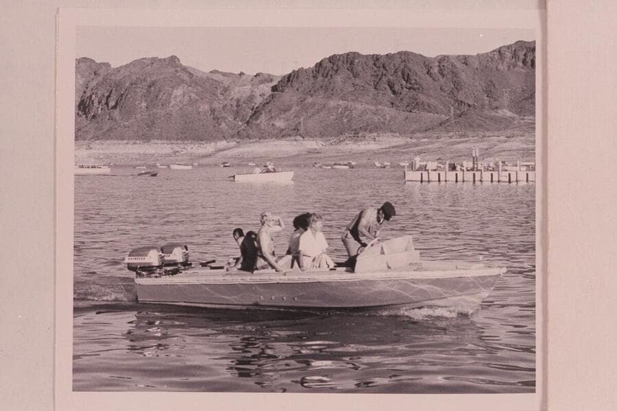 18 foot boats under full power on Lake Mead with 25HP Evinrude motors. The "I"; Riffey, Harris and Belknap
